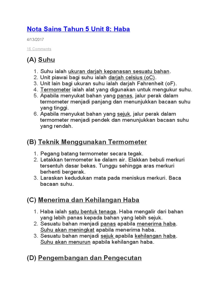 Boleh diubah suai mengikut kesesuaian masing-masing. Lembaran Kerja Sains Tahun 5 - 81 Suhu dan Haba. Unit piawai bagi suhu ialah darjah celsius oC.